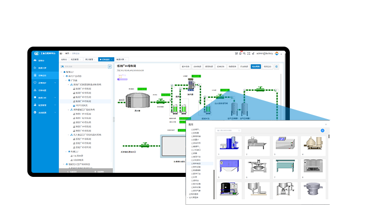 提供各種可視化組件,用戶可以根據(jù)項(xiàng)目及應(yīng)用需求,零編程、搭積木式的實(shí)現(xiàn)對現(xiàn)場設(shè)備和現(xiàn)場項(xiàng)目的工藝流程組態(tài)監(jiān)控。